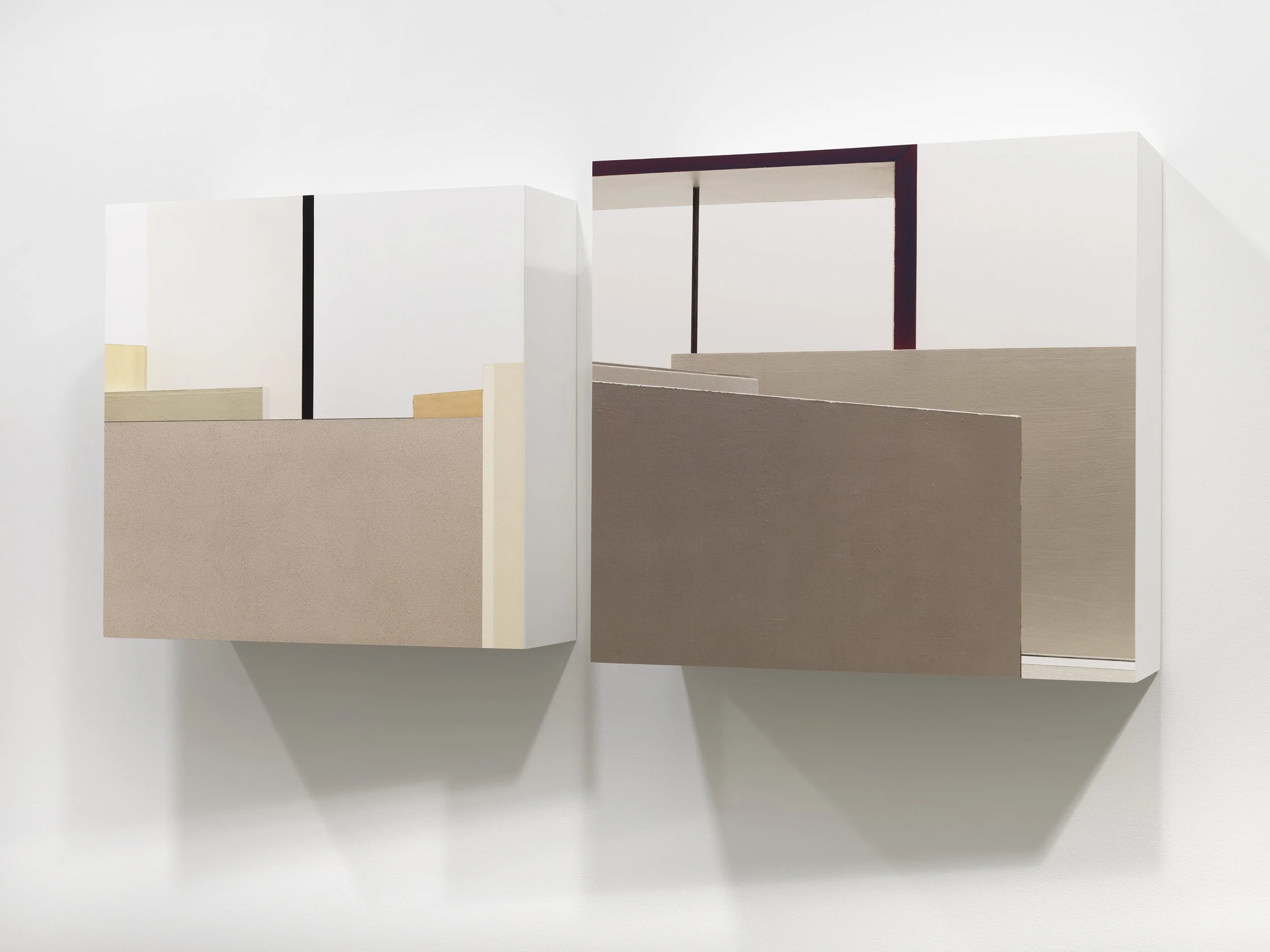Series: The Band, 2017 Click image for details Click image for details Click image for details The Band, installation view The Band, installation view The Band, installation view The Band, installation view Slide 1 Slide 1 (current slide) Slide 2 Slide 2 (current slide) Slide 3 Slide 3 (current slide) Slide 4 Slide 4 (current slide) Slide 5 Slide 5 (current slide) Slide 6 Slide 6 (current slide) Slide 7 Slide 7 (current slide) Convergent planes create two-dimensional compositions and the resulting photographic images are mounted on angled boxes on the wall. Photos by Dario Lasagni. © 2025 ethan ryman